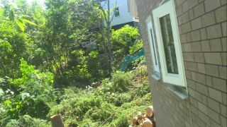 奥に行くほど、木が高く危険な工事!作業員の皆さん有り難うございますm(__)m