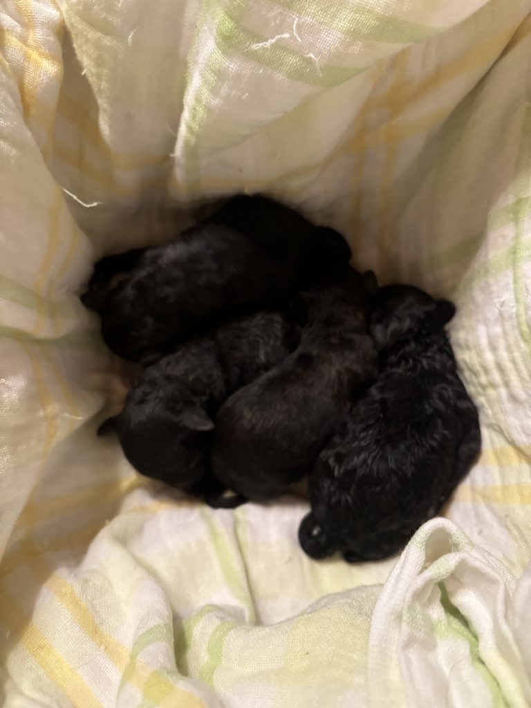 先日、居間にいるプードルのアナベルが出産しましたが、最後だと思って4匹目を取り上げて、お産部屋作って寝ました。